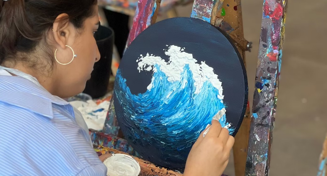 Espacio comunitario de arte en Alserkal Avenue con talleres grupales y sesiones libres de pintura para jóvenes y adultos durante todo el invierno.