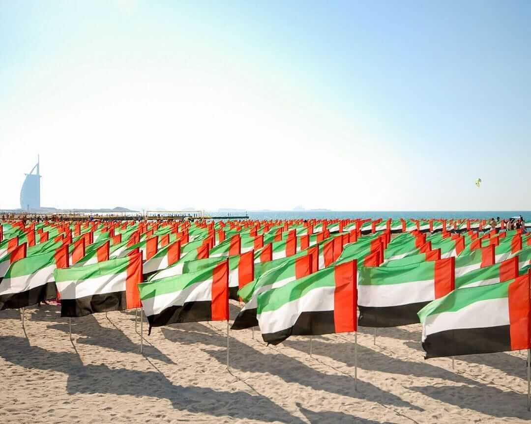 El Jardín de la Bandera de los EAU celebra la unión con una instalación artística al aire libre junto a la playa de Umm Suqeim (frente al hotel Burj Al Arab). Más de 11,000 banderas ondean formando enormes retratos aéreos de los padres fundadores Sheikh Zayed y Sheikh Rashid. El jardín permanecerá instalado desde el Día de la Bandera hasta los festejos nacionales.