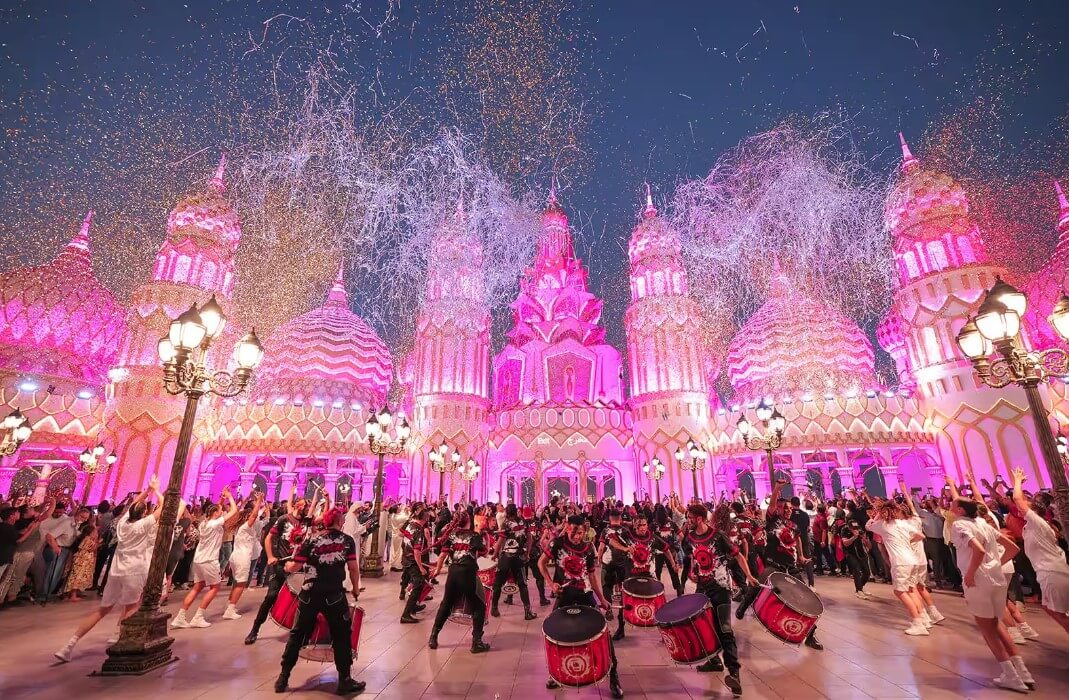 El parque multicultural Global Village ofrecerá una semana de fiesta nacional (del 27 de noviembre al 3 de diciembre) con decoraciones en verde, rojo y negro, espectáculos temáticos y mucho entretenimiento familiar. Cada noche (1, 2 y 3 de diciembre) habrá fuegos artificiales a las 9pm, junto con un show de drones en las noches del 1 y 2 de diciembre. También se presentará un musical coreográfico en el Main Stage, “From the Desert to the Stars”, interpretado dos veces al día (1–3 Dic) como tributo al espíritu nacional.