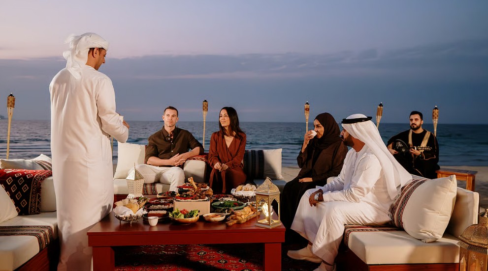 Durante Ramadan en Dubai, los majlis adquieren aún más importancia: son espacios decorados con alfombras, cojines y lámparas tradicionales donde las personas se reúnen para el iftar (ruptura del ayuno al atardecer) o el suhoor.